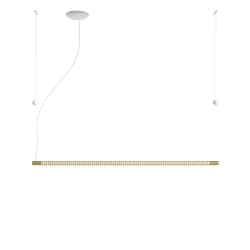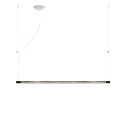 Squiggle H9 Rotaliana s'inspirant de la "Structure au néon" de Lucio Fontana pour la IX Triennale de Milan, Squiggle est un exosquelette tubulaire pendu au plafond qui cache une longue bande LED faisant jusqu'à 6 mètres. Une séquence d’ouvertures de forme d'hexagonale irrégulière allège la structure métallique en donnant lieu à des images géométriques très différentes les unes des autres: des lignes courbes cassées, le symbole de l'infini, des anneaux concentriques de plusieurs tailles. Power LED integrée 39W 2700K 2700lm CRI 90.