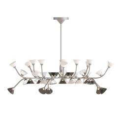 La famille de lampes Linfa Tooy, inspirée et imprégnée de la nature, conçue par Federico Peri, se déploie sur des bras si sinueux et élégants qu'ils évoquent les veines des feuilles, avec des points lumineux brillants comme des gouttes de rosée. Composée de suspensions, de lampadaires, de lampes de table et d'appliques, cette famille propose des branches raffinées en finitions or, titane ou nickel mat, tandis que les sources lumineuses, en verre de Murano, sont disponibles en finitions fumées, transparentes ou blanc laiteux.