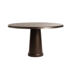 All-round Magis est une table ronde, présente des détails soigneusement étudiés : le bord biseauté du plateau offre une sensation agréable, tandis que la base saillante de la colonne rehausse le volume. La table est disponible en trois finitions monochromes : terracotta, bronze et gris.
