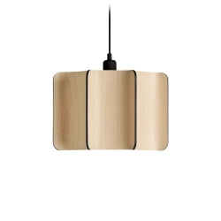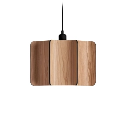 Pour créer la forme, des panneaux de placage de bois sont disposés verticalement concave autour de la source lumineuse et maintenus en place par un cadre acrylique. Chaque morceau de placage reflète magnifiquement la lumière provenant de cette lampe agréable.