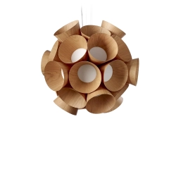 Les fleurons sont réalisés en placage de bois LZF puis placés côte à côte, où ils montent et descendent en tandem du centre du Dandelion. L’effet est saisissant, chaque entonnoir de lumière coalissant dans un tout collectif et brillant.
