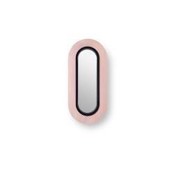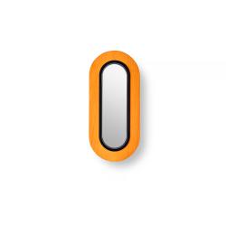 Le mur de la lentille ovale est disponible dans les placages en bois suivants : cerisier naturel, blanc ivoire, hêtre naturel, jaune, orange, rouge, bleu, gris, rose pâle et bleu marine. Les finitions métalliques sont noir, ivoire mat ou or.