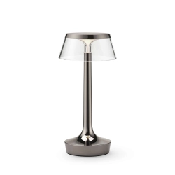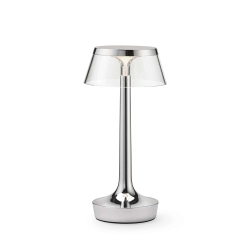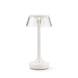 Bon Jour Unplugged Flos est une lampe de table sans fil rechargeable fournissant une lumière directe. Corps en matériau moulé par injection et diffuseur transparent en PMMA. Source lumineuse avec technologie Edge Lighting. Autonomie de la batterie de 6/24 heures, rechargeable via USB C et Qi. Capteur optique dallumage sur la base avec fonction de variation dintensité à 4 niveaux et contrôle de la température de couleur sur 3 niveaux (2200K, 2700K et 3000K). Câble de charge USB-C inclus dans l'emballage, longueur utile de 120 cm. LED integrée 3W 150lm tunable white 2200-2700-3000K CRI 90 DIMMABLE. Diffuseur transparent inclus dans l'emballage, sur demande il est possible d'acheter le diffuseur en PMMA moulé par injection transparent ou en tissu tissé à la main ou en raphia, pour des versions personnalisées.