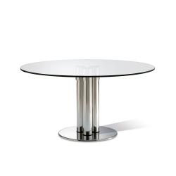 Marcuso 2532 Zanotta est une table ronde. Avec Marcuso, son concepteur, tout change, parce que "Zanuso ramène la configuration formelle de l’objet aux géométries fondamentales du cercle, du carré et du rectangle. Et une fois que la technologie appropriée pour le soudage direct entre le cristal et l’acier a été identifiée, la recherche de conception s’oriente vers la solution du système de fixation entre la jambe de support et le plan d’appui, en concevant un fond en acier inoxydable qui d’un côté est fixé à la surface en cristal, et de l’autre est vissé sur la jambe en acier" (Stefano Casciani). Une table constructivement innovante, structurellement démontable, "conçue et réalisée comme un bâtiment moderne".