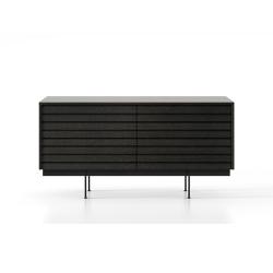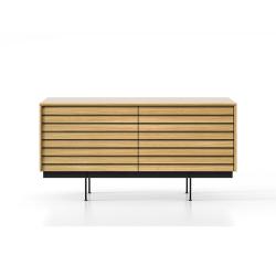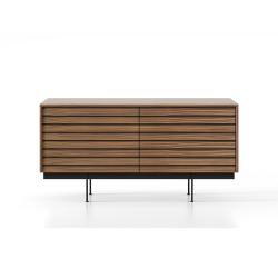 La collection Sussex de Punt Mobles, conçue par Terence Woodgate, est une famille de meubles de salon et de meuble TV caractérisée par un design exclusif : des lattes horizontales qui parcourent l’avant, créant une esthétique tridimensionnelle qui masquent la structure interne et servent de poignées pour les portes et les tiroirs.