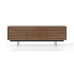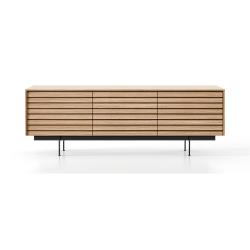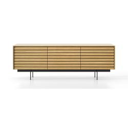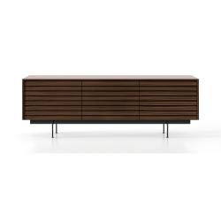 La collection Sussex de Punt Mobles, conçue par Terence Woodgate, est une famille de meubles de salon et de meuble TV caractérisée par un design exclusif : des lattes horizontales qui parcourent l’avant, créant une esthétique tridimensionnelle qui masquent la structure interne et servent de poignées pour les portes et les tiroirs.