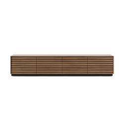 La collection Sussex de Punt Mobles, conçue par Terence Woodgate, est une famille de meubles de salon et de meuble TV caractérisée par un design exclusif : des lattes horizontales qui parcourent l’avant, créant une esthétique tridimensionnelle qui masquent la structure interne et servent de poignées pour les portes et les tiroirs.