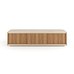 Le buffet Atrio est idéal pour les intérieurs et les extérieurs couverts, grâce aux matériaux de haute qualité utilisés : bois massif de teck pour la structure et plans en céramique émaillée pour le dessus.>br