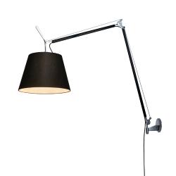 Tolomeo Mega Artemide est une lampe à bras en porte-à-faux en aluminium poli ou noir; diffuseur soutenu par une matière plastique; support mural en aluminium poli. Diffuseur réglable dans toutes les directions. Système d'équilibrage à ressort. LED integrée 31W 3000K CRI 90, dimmer sur la tête.