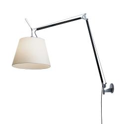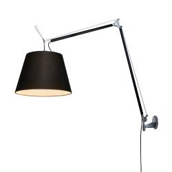 Tolomeo Mega Artemide est une lampe à bras en porte-à-faux en aluminium poli ou noir; diffuseur soutenu par une matière plastique; support mural en aluminium poli. Diffuseur réglable dans toutes les directions. Système d'équilibrage à ressort. LED integrée 31W 2700K CRI 90, dimmer sur la tête.