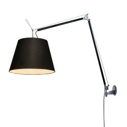 Tolomeo Mega Artemide est une lampe à bras en porte-à-faux en aluminium poli ou noir; diffuseur soutenu par une matière plastique; support mural en aluminium poli. Diffuseur réglable dans toutes les directions. Système d'équilibrage à ressort. LED integrée 31W 2700K CRI 90, dimmer sur la tête.