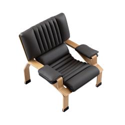 Le fauteuil Supercomfort B-Line, conçu par Joe Colombo, est le résultat d’une étude ergonomique minutieuse de la posture et repose sur l’idée d’utiliser une seule feuille de placage de bois découpé, sans jonction. Le processus de production a été optimisé en cours d’ouvrage en divisant la structure en deux feuilles: l’une pour former la courbe dossier- assise-accoudoirs et l’autre pour accueillir les jambes. Le rembourrage est constitué d’un coussin anatomique avec coutures à sections différenciées pour un confort maximal. Le fauteuil est complété par de généreux rembourrages aux accoudoirs enveloppant la structure.