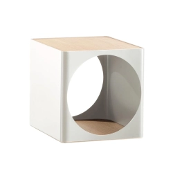 Ring B-Line est une module de rangement qui, utilisé individuellement, peut agir comme une table basse et une fois empilé multiplie la capacité de décorer les murs ou de créer des cloisons. Également disponible sur roulettes, il est constitué d’une coque en tôle d’acier peint et de deux plans en multiplis de chêne.