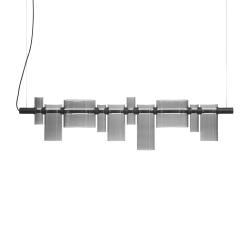 Le design de Dancing Glass célèbre la danse de la lumière à travers ses formes uniques. La source lumineuse LED intégrée est incorporée avec maestria et offre une émission lumineuse polyvalente à la fois vers le haut et vers le bas (up&down). Un détail fondamental de cette suspension réside dans ses réflecteurs, qui peuvent être orientés individuellement. Cette fonctionnalité distinctive permet de personnaliser l'éclairage, en dirigeant les faisceaux lumineux pour créer des agencements lumineux toujours inédits et des jeux d'ombres fascinants dans l'environnement.