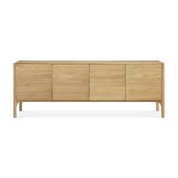 La collection PI Ethnicraft rend hommage au design du vivant en conservant la force, les courbes et les lignes créées par la nature. Des formes intrigantes se dessinent dans cette finition polie et imparfaite, à la fois élégante et stylée. Chaque modèle PI est fini à la main pour garantir le respect du caractère unique du bois. Le buffet PI est une pièce exceptionnelle qui offre une solution de rangement adaptée à tous types d'espaces.