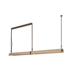 La suspension Aluet S/100/2L représente la synthèse parfaite entre l'esthétique moderne et la noblesse des matériaux organiques. Conçue par le studio Emiliana Design pour la prestigieuse marque Bover, cette solution d'éclairage se distingue par un design linéaire et sophistiqué qui rehausse la valeur esthétique de tout environnement intérieur. Le choix du bois naturel comme protagoniste n'est pas seulement un hommage à la tradition artisanale, mais une véritable déclaration de style qui confère une unicité à chaque pièce, car les veinures et les nuances de la matière vive font de chaque lampe un objet exclusif et unique.