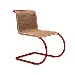 La collection MR de Knoll représente certaines des premières créations de mobilier en acier de Mies van der Rohe. Le choix du matériau s'inspire de Marcel Breuer, autre figure emblématique du Bauhaus, tandis que les formes sont considérées comme des réinterprétations modernes des fauteuils à bascule en fer du XIXe siècle. L'acier tubulaire a été le point de départ de nombreuses expérimentations sur les assises en porte-à-faux, qui ont abouti à la création de la collection MR de Ludwig Mies van der Rohe entre 1927 et 1929. Influencé par Marcel Breuer, Ludwig Mies van der Rohe a rapidement perçu les avantages de l'acier tubulaire. Alliant ce matériau moderne à la forme classique des fauteuils à bascule en fer du XIXe siècle, il a créé la chaise MR en 1927. Avec ses courbes élégantes et sa structure en porte-à-faux, la chaise arbore une silhouette remarquable qui épouse les mouvements de l'utilisateur avec souplesse. En 1948, Mies accorde à Knoll les droits exclusifs de production de son mobilier, y compris la série MR. Le logo de KnollStudio et la signature de Ludwig Mies van der Rohe sont imprimés sur le piètement de la chaise.