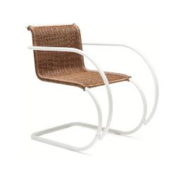 La collection MR de Knoll représente certaines des premières créations de mobilier en acier de Mies van der Rohe. Le choix du matériau s'inspire de Marcel Breuer, autre figure emblématique du Bauhaus, tandis que les formes sont considérées comme des réinterprétations modernes des fauteuils à bascule en fer du XIXe siècle. L'acier tubulaire a été le point de départ de nombreuses expérimentations sur les assises en porte-à-faux, qui ont abouti à la création de la collection MR de Ludwig Mies van der Rohe entre 1927 et 1929. Influencé par Marcel Breuer, Ludwig Mies van der Rohe a rapidement perçu les avantages de l'acier tubulaire. Alliant ce matériau moderne à la forme classique des fauteuils à bascule en fer du XIXe siècle, il a créé la chaise MR en 1927. Avec ses courbes élégantes et sa structure en porte-à-faux, la chaise arbore une silhouette remarquable qui épouse les mouvements de l'utilisateur avec souplesse. En 1948, Mies accorde à Knoll les droits exclusifs de production de son mobilier, y compris la série MR. Le logo de KnollStudio et la signature de Ludwig Mies van der Rohe sont imprimés sur le piètement de la chaise.