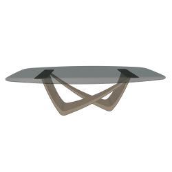 La table Bach, dans ses versions rectangulaire et tonneau, s'impose dans l'espace comme un chef-d'œuvre de design inspiré de l'ingénierie aéronautique, portant la signature de Bontempi dans chaque intérieur de standing. Le défi de ce projet réside dans la création d'un élément en forme d'aile qui constitue le piètement de la table, où le rapprochement des deux structures semble s'opérer avec légèreté dans une liaison presque imperceptible. Cette particularité transmet une sensation de légèreté et d'harmonie tout en conservant une présence scénique affirmée et distinctive. La complexité structurelle due aux porte-à-faux de stabilité a été résolue de main de maître grâce à une structure interne en sandwich et des membrures de style aile d'avion, qui confèrent de l'élan et une solidité impeccable à l'ouvrage. Choisir ce modèle, c'est investir dans un objet d'art capable de devenir le protagoniste absolu du salon grâce à un profil alléger par des habillages latéraux en retrait qui en exaltent l'élégance formelle.