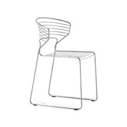 Des lignes fonctionnelles projetées qui se déplacent dans l'espace dessinent la silhouette légère de la chaise Koki Wire de Desalto : une grande famille composée d'une chaise, de tabourets et d'un canapé, une évolution et un achèvement naturels de la précédente collection Koki.
