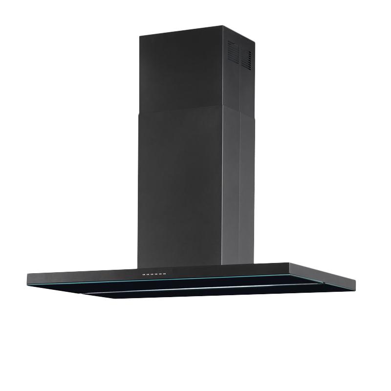 Hotte îlot Airone Verdi avec verre blanc ou noir et acier blanc ou anthracite.