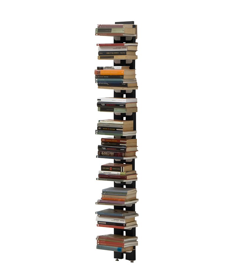 LE ZIE DI MILANO bibliothèque sur pied fixée au mur ZIA ORTENSIA (H 202 cm / Noir - Hêtre massif et acier)