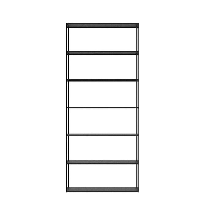 Easy Irony Zeus est une bibliothèque modulaire et amovible. Montants tubulaires carrés 15 x 15 mm et étagères en tôle pliée par pression de 1,5 mm d'épaisseur. Dimensions des étagères L 74 ou 104 cm. Peinture époxy poudre noire cuivre, nouvelle version sablé ou blanc gaufré. Prévu pour un montage mural. Espace utile entre les étagères 36 cm.