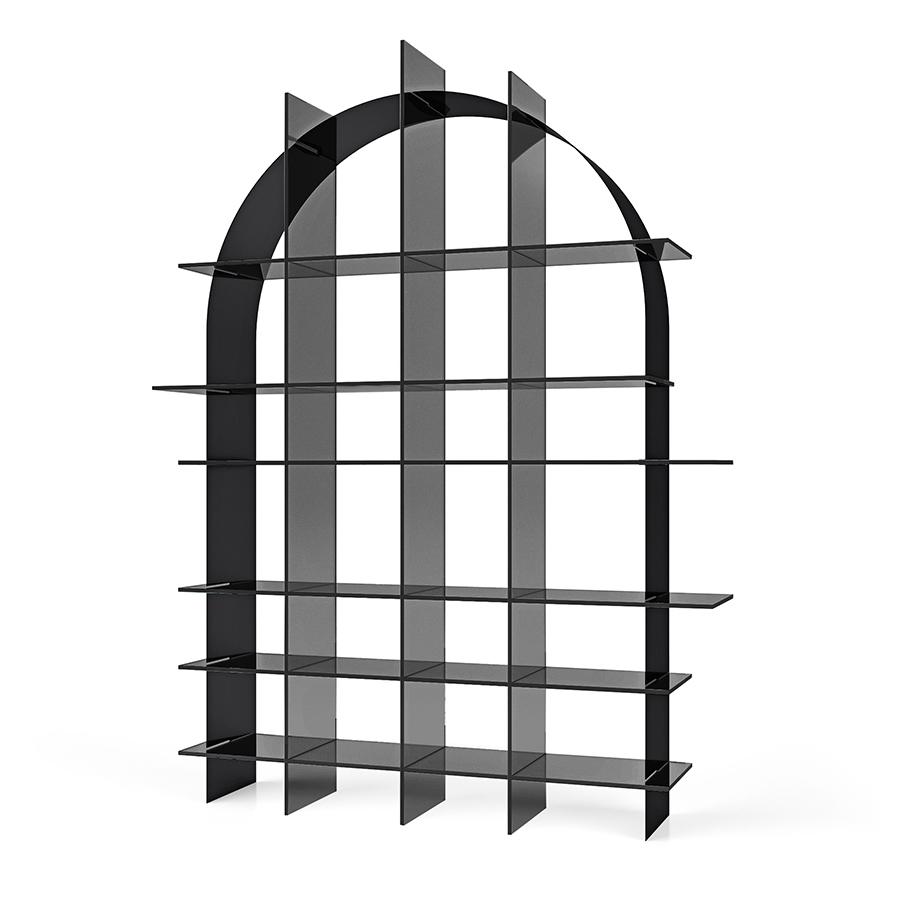 TONELLI bibliothèque verticale PARADIGMA A (Verre fumé et structure noire brossée - verre et métal)