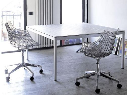 Driade Meridiana, assise iconique de la collection driade conçue par Christophe Pillet, puise son inspiration des lignes du diamant. Réalisée dans les variantes: chaise, fauteuil et tabouret avec corps en polycarbonate transparent, fumé, blanc et noir ou en cuir. La structure est disponible avec finition en acier et acier laqué couleur noire matte. Assise à esthétique incomparable, elle est parfaite soit dans la salle à manger soit dans un bureau.