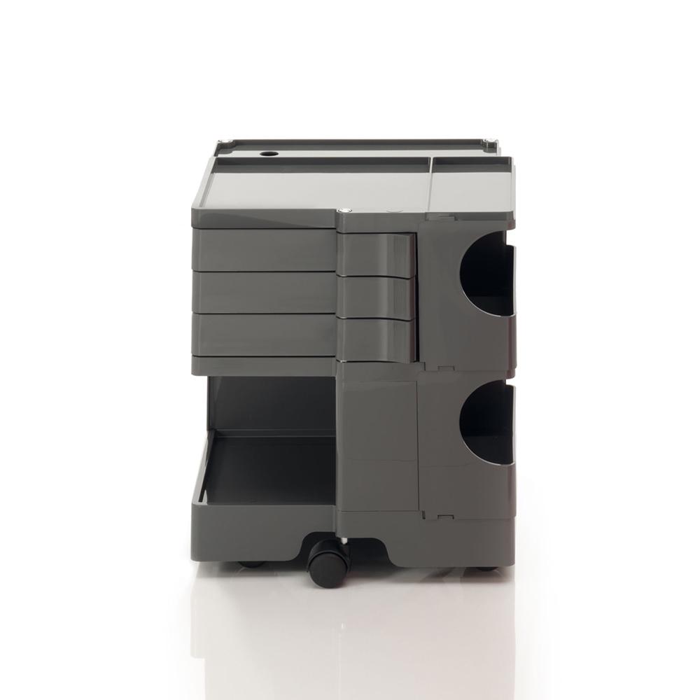 Icône historique du design, le chariot-armoire Boby B-Line se distingue par son approche dynamique et sa grande flexibilité. Conçu pour garantir une composition verticale simple, il permet d’obtenir différentes configurations avec des capacités personnalisées. La structure en ABS, composée de modules avec tiroirs et étagères, est montée sur 5 roulettes pivotantes en polypropylène et propose 4 solutions en termes de hauteur. Il fait partie de la collection permanente du MoMA de New York et de la Triennale de Milan, Prix Smau en 1971. Sur demande, il est possible d'acheter l'étagère en contreplaqué ou en liège.