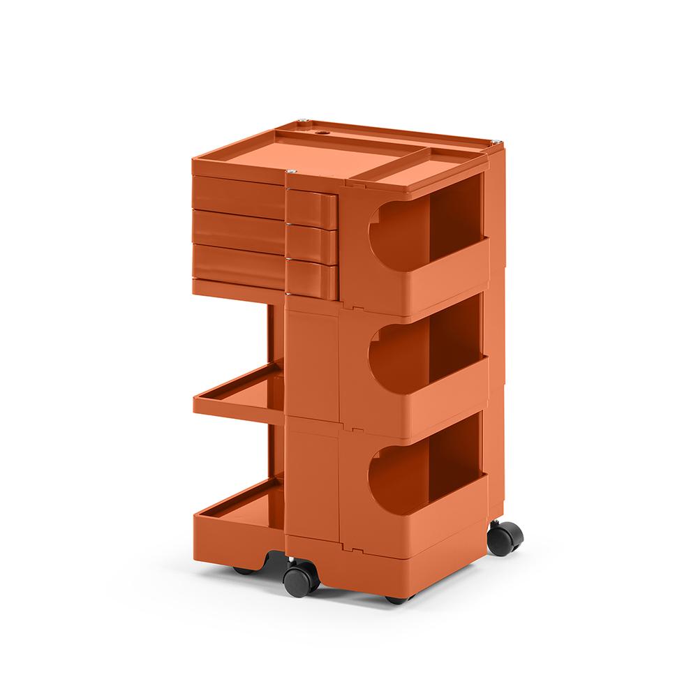 Icône historique du design, le chariot-armoire Boby B-Line se distingue par son approche dynamique et sa grande flexibilité. Conçu pour garantir une composition verticale simple, il permet d’obtenir différentes configurations avec des capacités personnalisées. La structure en ABS, composée de modules avec tiroirs et étagères, est montée sur 5 roulettes pivotantes en polypropylène et propose 4 solutions en termes de hauteur. Il fait partie de la collection permanente du MoMA de New York et de la Triennale de Milan, Prix Smau en 1971. Sur demande, il est possible d'acheter l'étagère en contreplaqué ou en liège.