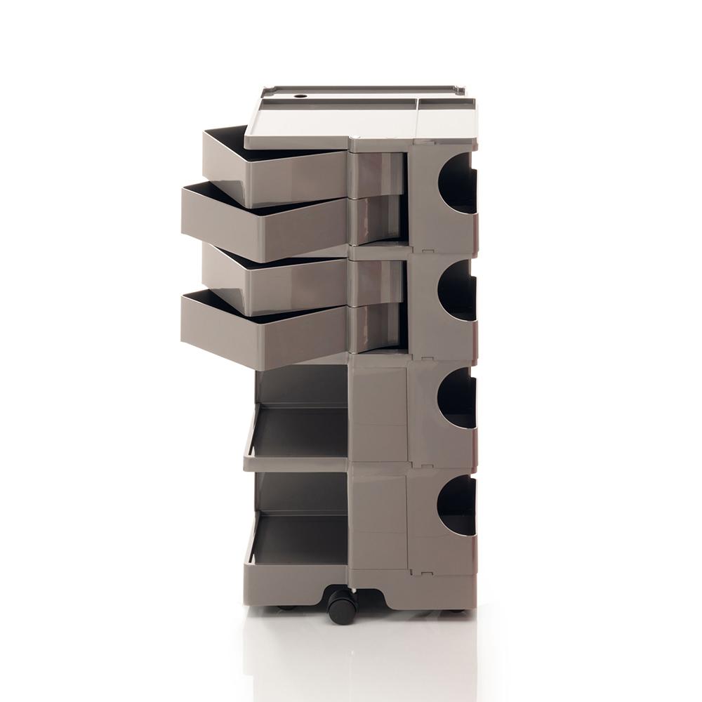 Icône historique du design, le chariot-armoire Boby B-Line se distingue par son approche dynamique et sa grande flexibilité. Conçu pour garantir une composition verticale simple, il permet d’obtenir différentes configurations avec des capacités personnalisées. La structure en ABS, composée de modules avec tiroirs et étagères, est montée sur 5 roulettes pivotantes en polypropylène et propose 4 solutions en termes de hauteur. Il fait partie de la collection permanente du MoMA de New York et de la Triennale de Milan, Prix Smau en 1971. Sur demande, il est possible d'acheter l'étagère en contreplaqué ou en liège.