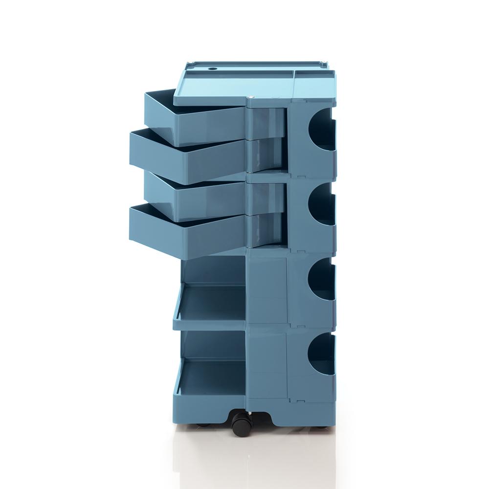 Icône historique du design, le chariot-armoire Boby B-Line se distingue par son approche dynamique et sa grande flexibilité. Conçu pour garantir une composition verticale simple, il permet d’obtenir différentes configurations avec des capacités personnalisées. La structure en ABS, composée de modules avec tiroirs et étagères, est montée sur 5 roulettes pivotantes en polypropylène et propose 4 solutions en termes de hauteur. Il fait partie de la collection permanente du MoMA de New York et de la Triennale de Milan, Prix Smau en 1971. Sur demande, il est possible d'acheter l'étagère en contreplaqué ou en liège.