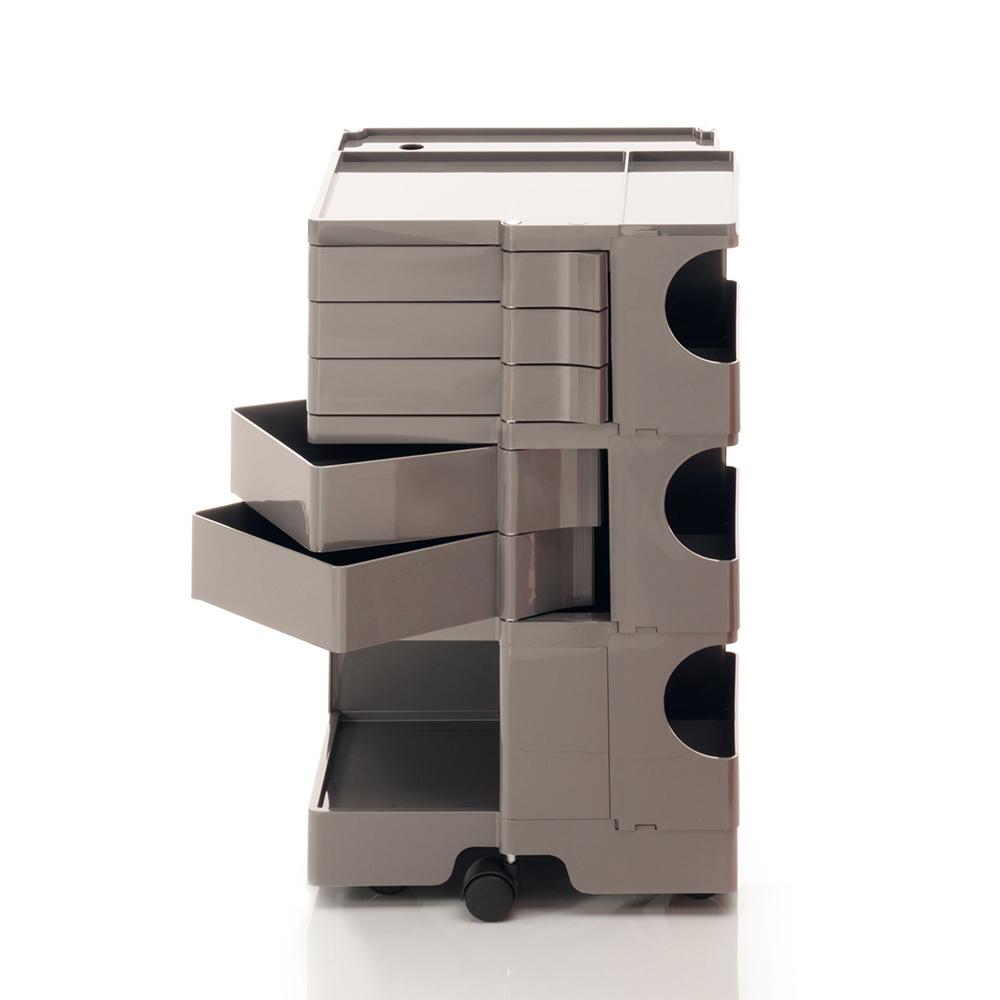 Icône historique du design, le chariot-armoire Boby B-Line se distingue par son approche dynamique et sa grande flexibilité. Conçu pour garantir une composition verticale simple, il permet d’obtenir différentes configurations avec des capacités personnalisées. La structure en ABS, composée de modules avec tiroirs et étagères, est montée sur 5 roulettes pivotantes en polypropylène et propose 4 solutions en termes de hauteur. Il fait partie de la collection permanente du MoMA de New York et de la Triennale de Milan, Prix Smau en 1971. Sur demande, il est possible d'acheter l'étagère en contreplaqué ou en liège.