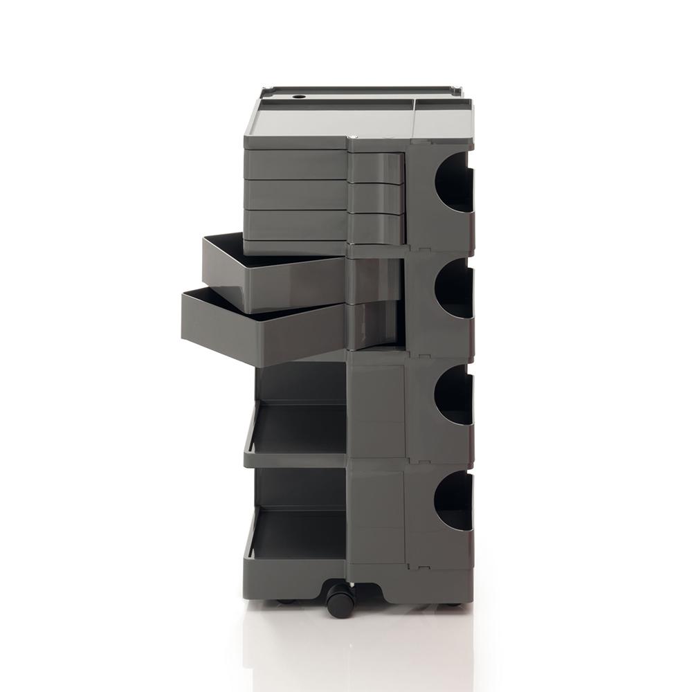 Icône historique du design, le chariot-armoire Boby B-Line se distingue par son approche dynamique et sa grande flexibilité. Conçu pour garantir une composition verticale simple, il permet d’obtenir différentes configurations avec des capacités personnalisées. La structure en ABS, composée de modules avec tiroirs et étagères, est montée sur 5 roulettes pivotantes en polypropylène et propose 4 solutions en termes de hauteur. Il fait partie de la collection permanente du MoMA de New York et de la Triennale de Milan, Prix Smau en 1971. Sur demande, il est possible d'acheter l'étagère en contreplaqué ou en liège.