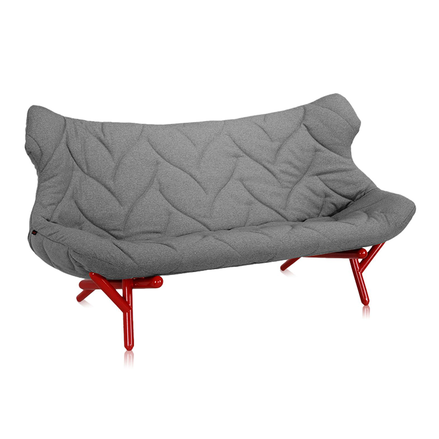 KARTELL canapé FOLIAGE (Revêtement gris - pieds rouges - siège en tissu Trevira - Pieds en fer verni)