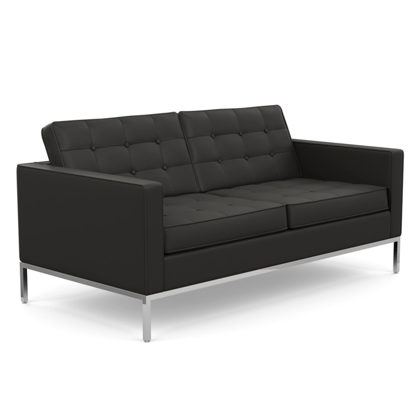 KNOLL canapé à 2 places FLORENCE en cuir (Acqua Black Sea - Revêtement Cat. Y et structure en acier chromé)
