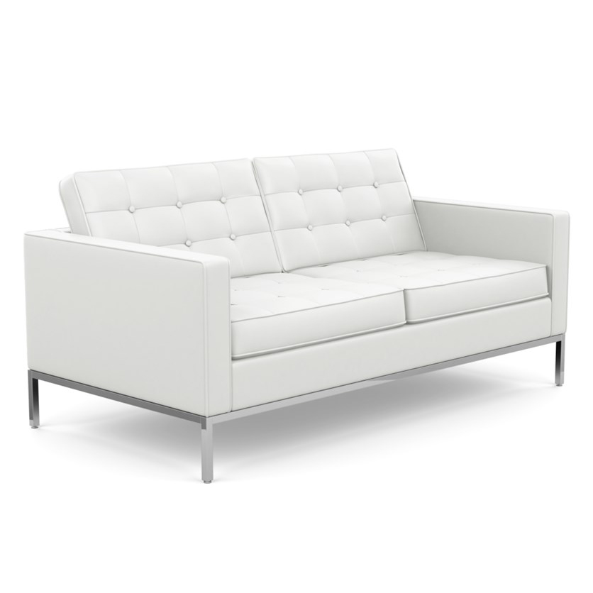KNOLL canapé à 2 places FLORENCE en cuir (Sabrina White - Revêtement Cat. Z et structure en acier chromé)