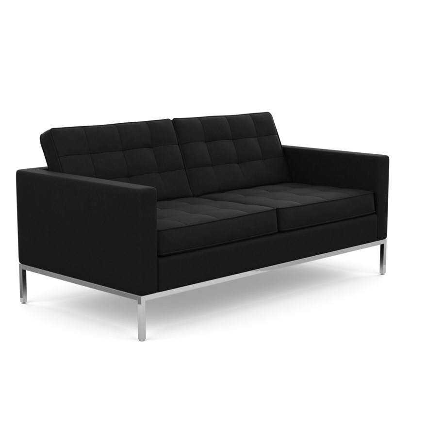 KNOLL canapé à 2 places FLORENCE en tissu (Ultrasuede Black Onyx - Revêtement Cat. A et structure en acier chromé)
