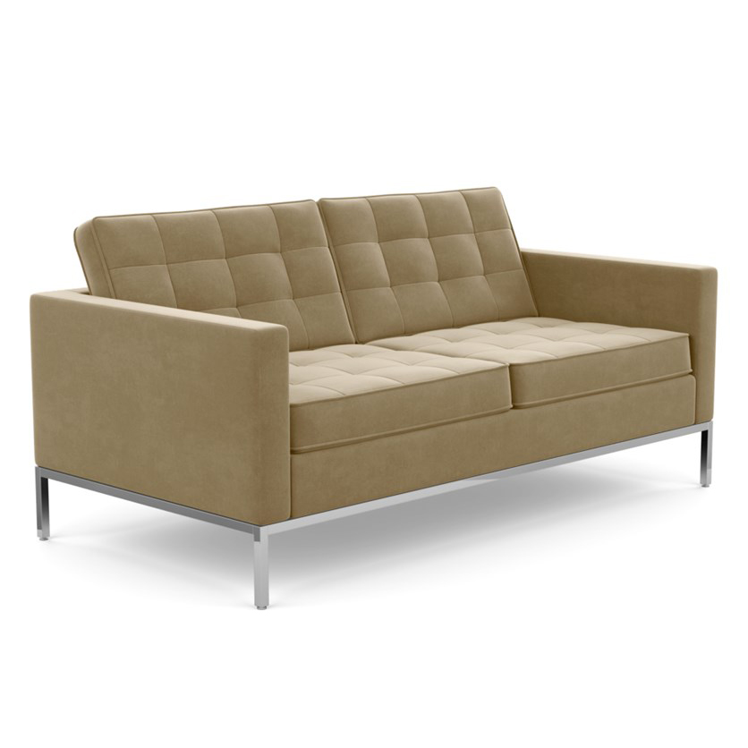 KNOLL canapé à 2 places FLORENCE en tissu (Knoll Velvet Sandstone - Revêtement Cat. B et structure en acier chromé)