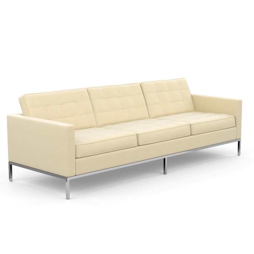 KNOLL canapé à 3 places FLORENCE en tissu (Circa Ivory - Revêtement Cat. C et structure en acier chromé)