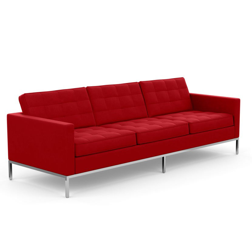 KNOLL canapé à 3 places FLORENCE en tissu (Ultrasuede Vermillion - Revêtement Cat. A et structure en acier chromé)