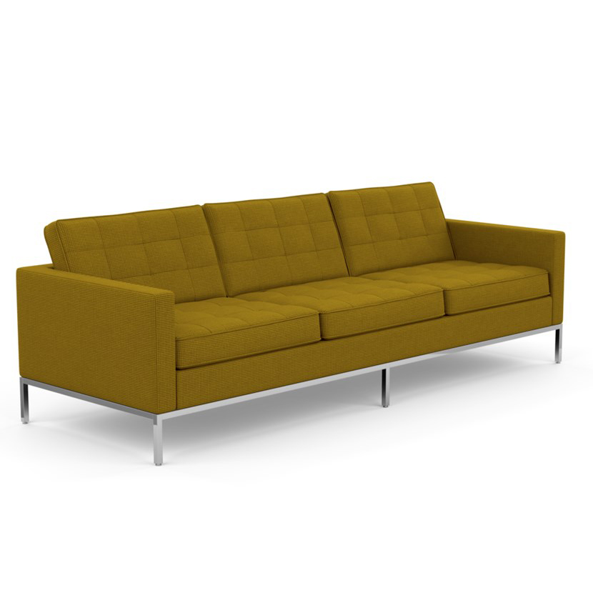 KNOLL canapé à 3 places FLORENCE en tissu (Cato Green - Revêtement Cat. B et structure en acier chromé)