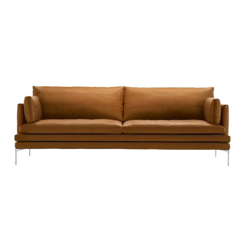 La collection William Zanotta se compose de fauteuil, canapés monoblocs, modulables, ottomans, dormeuses et étagères. Pieds en alliage d’aluminium poli ou, sur demande, nickelé satiné naturel ou noir, ou verni noir. Structure en acier. Ressorts sur bandes élastiques. Rembourrage assise en polyuréthane/ fibre polyester thérmolié. Rembourrage dossier et accoudoirs en polyuréthane écumé autoextinguible/fibre polyester thérmolié. Coussin assise en plume d’oie – matériel 100% vierge avec insert en polyuréthane. Coussin dossier en plume d’oie – matériel 100% vierge. Revêtement intérieur inamovible en tissu de nylon. Revêtement extérieur déhoussable en tissu ou cuir. Coussins d'accoudoir non inclus, peuvent être achetés séparément.