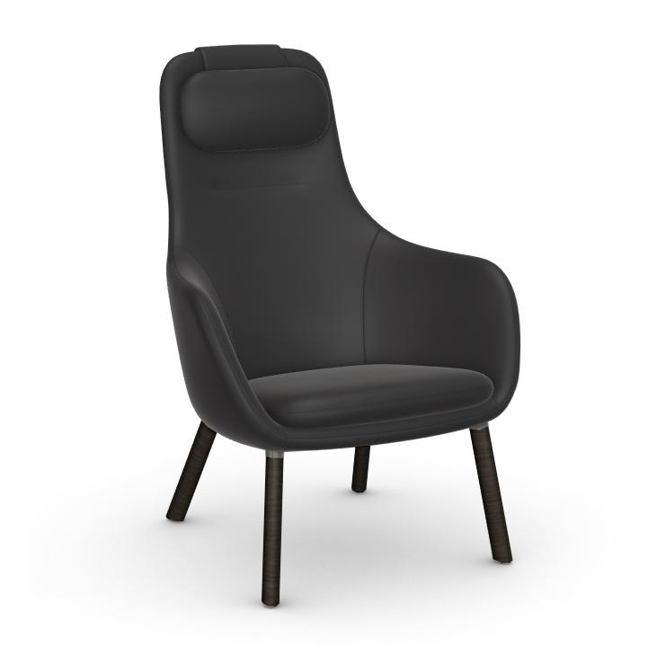 VITRA fauteuil avec le coussin d'assise amovible HAL LOUNGE CHAIR en Cuir Premium (Asphalte, base en chêne foncé avec vernis de protection - Cuir et bois)