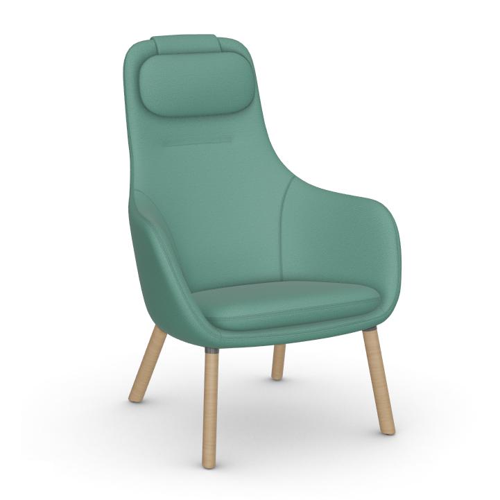 VITRA fauteuil avec le coussin d'assise amovible HAL LOUNGE CHAIR en tissu Dumet (Bleu voilé/Vert éméraude, base en chêne naturel avec vernis de protection - Tissu et bois)