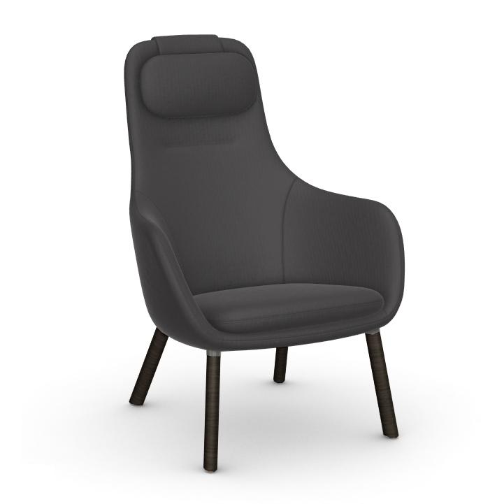 VITRA fauteuil avec le coussin d'assise amovible HAL LOUNGE CHAIR en tissu Volo (Gris moyen, base en chêne foncé avec vernis de protection - Tissu et bois)
