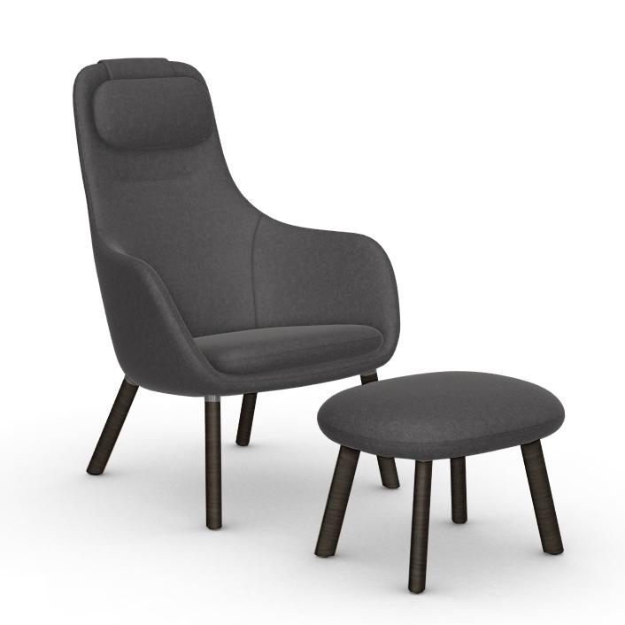 Chair est extrêmement polyvalent, convient à une utilisation à la maison ou dans les espaces publics et peut être utilisé seul, à deux ou en groupe. Cependant, un design minimaliste n‘est pas synonyme de neutralité fastidieuse : les produits de Jasper Morrison portent indubitablement sa griffe. La sobriété signifie plutôt que le design n‘obéit pas aux tendances à la mode mais qu‘il dégage au contraire une aura de sérénité et restera intemporel. La force du design apparaît toujours plus nettement au fil du temps, alors que d‘autres créations contemporaines qui attirent davantage l‘attention sont depuis longtemps tombées dans le déclin. Le fauteuil peut être assorti au HAL Ottoman, l‘utilisateur pouvant ainsi profiter entièrement de son confort en surélevant ses pieds. Les créations de Jasper Morrison ne se démarquent pas par un design remarquablement nouveau ou à la mode, mais incarnent plutôt la mise à jour et la perfection d‘une typologie familière comme le démontre le HAL Lounge Chair qui est la réinterprétation par Morrison du