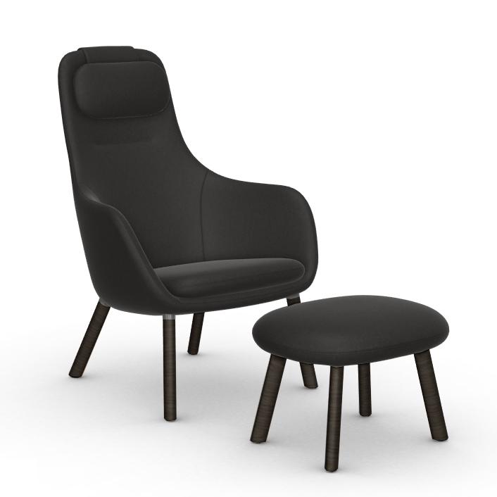 VITRA fauteuil avec le coussin d'assise amovible HAL LOUNGE CHAIR & OTTOMAN en tissu Cosy 2 (Nero mérinos, base en chêne foncé avec vernis de protection - Tissu et bois)