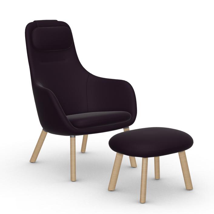 VITRA fauteuil avec le coussin d'assise amovible HAL LOUNGE CHAIR & OTTOMAN en tissu Dumet (Mûre mélange, base en chêne naturel avec vernis de protection - Tissu et bois)